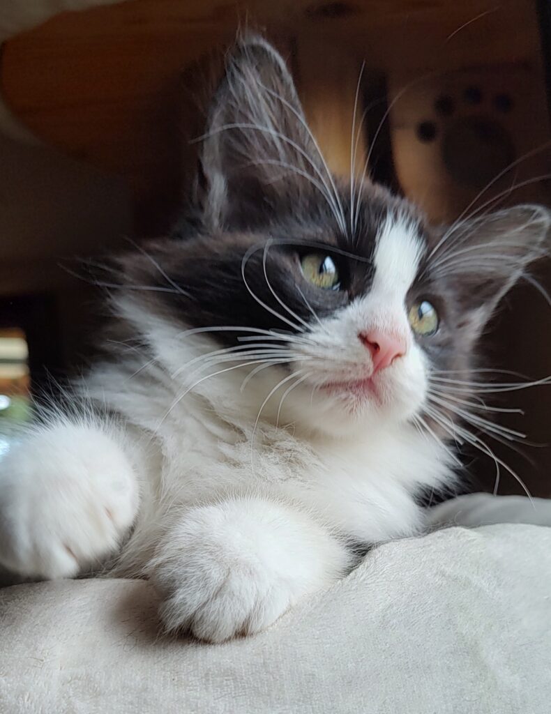 Father: Silverleaf’s Kalegcos – black silver blotched and white